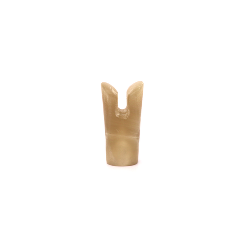 Developed with the expertise of Kaspian Mounted Archery, the K-nock features a unique design that allows for easy finger placement and alignment with the string groove. The concave shape on both sides of the nock provides a secure grip that won't slip, while the widened end of the concave ensures a confident hold every time.