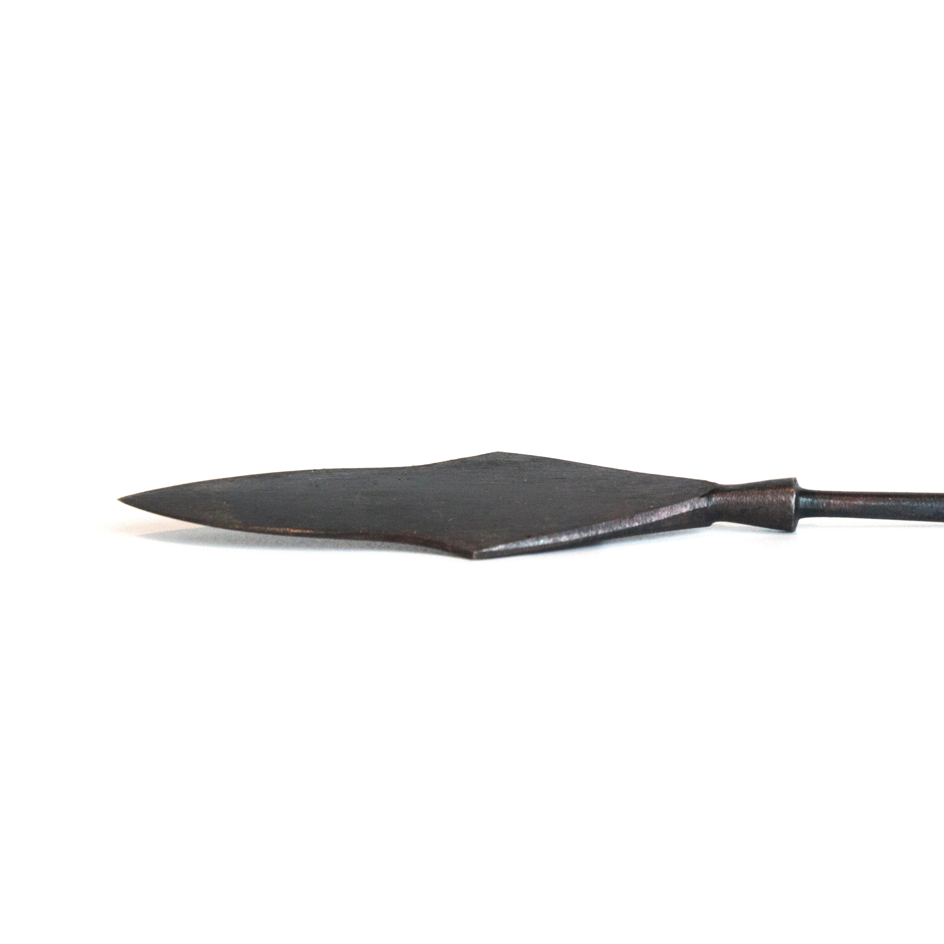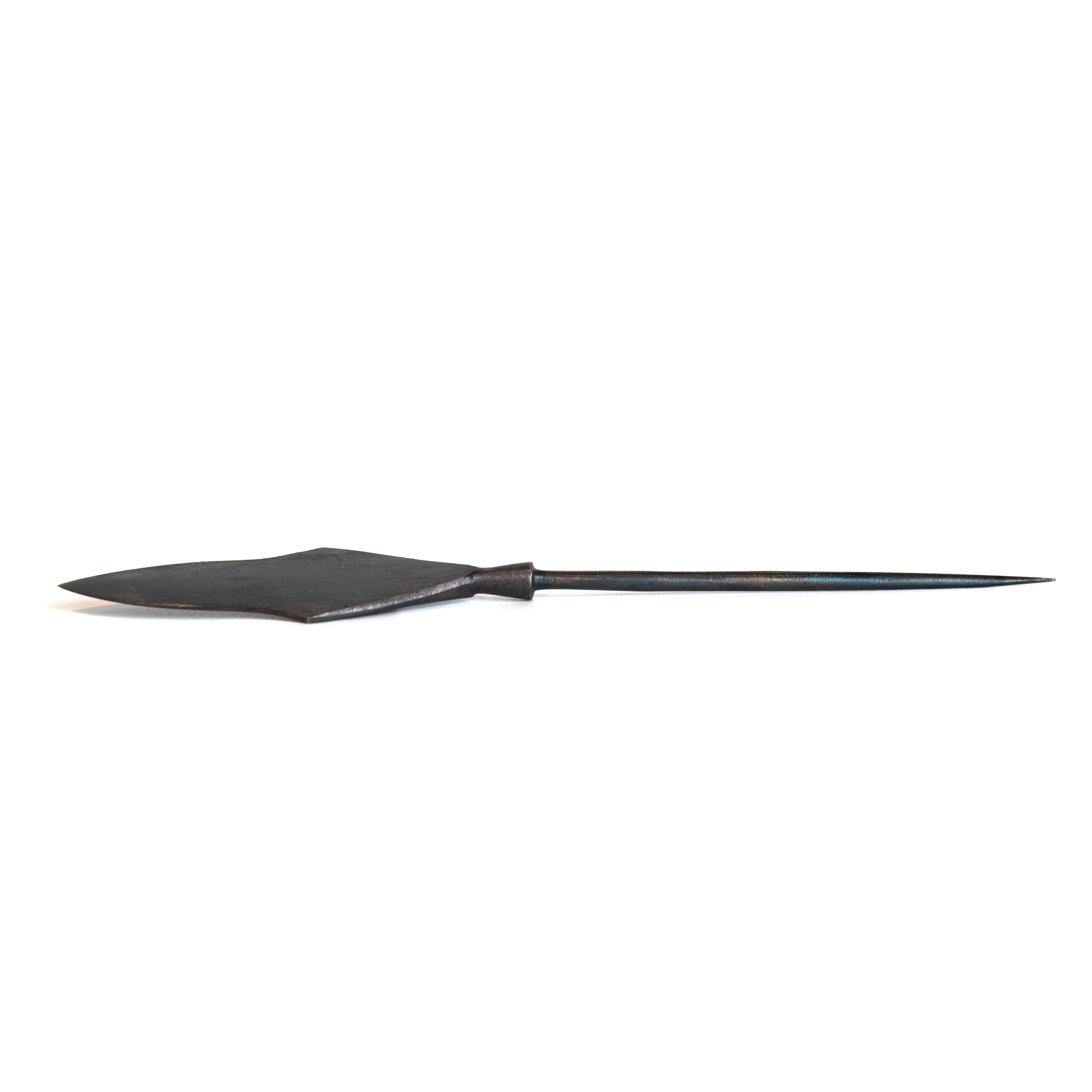 Documented by A. F. Medvedev in “Tatar-Mongol Arrowheads in Eastern Europe,” this trihedral Mongol arrowhead reflects finds from Karakorum and Rus’ cities, dating to Batu Khan’s campaign (1237–1240). Its three-edged pyramidal form was engineered for one purpose—armor penetration. Designed to cut through chain mail, lamellar armor, and shields, it stands as a hallmark of Mongol warfare and a symbol of ruthless battlefield efficiency.